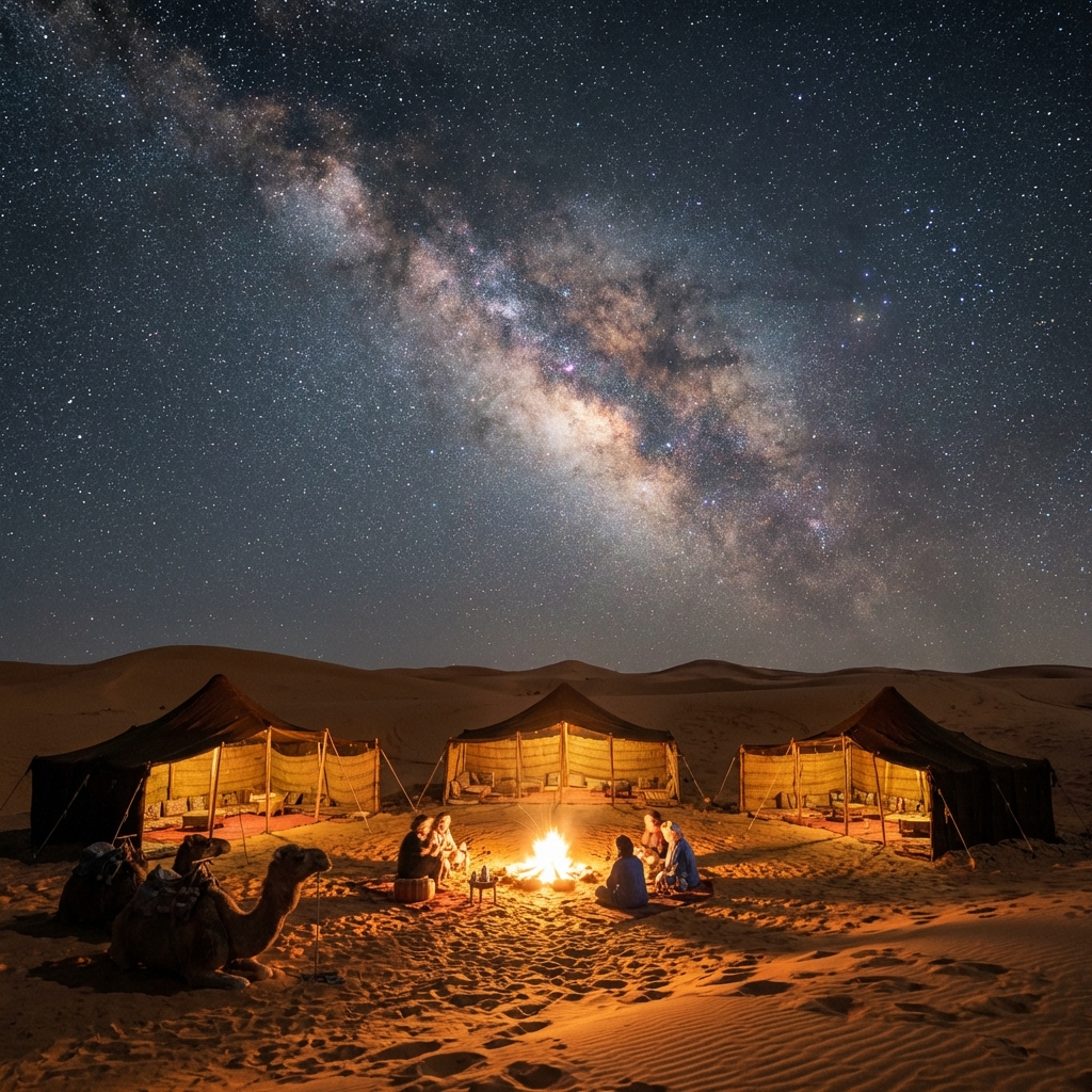We chose Nosade Desert because it offers a truly therapeutic approach to the desert experience, combining Anica Herrmann's expertise in yoga therapy with deep local knowledge. Unlike many desert tours, Nosade focuses on silence and stillness as key components of the journey. The Erg Chebbi dunes are spectacular, and Nosade ensures a sustainable, low-impact presence that respects the fragile environment. The authentic Berber connection - from the camel trekking to the traditional music and tea ceremonies - feels genuine rather than performative. It is perfect for those seeking a spiritual pilgrimage into the void, where the external vastness of the Sahara mirrors the internal space created through dedicated practice.